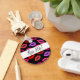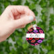 Red, purple, and bright pink pucker lip pattern keychain. A fun pattern featuring random colourful lips on a black background round keychain. Trendy lip pattern keychain for girlfriend or wife. Great lip pattern keychain for makeup artists or lipstick lovers. This is the perfect red, purple, and pink seamless lip pattern on a keychain to give during birthdays, Christmas parties, or New Year. You can change the text to a saying or name.