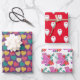 Red Pink And Violet Santa Claus Christmas Wrapping Paper Sheets.