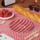 Red Pink Candy Stripe Christmas Social Club Paper Plate