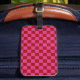 Red + Pink Check Chequered Chequerboard Pattern Luggage Tag