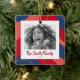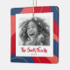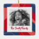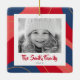 Christmas ornament with custom photo and red, pink and dark blue border.