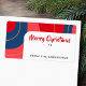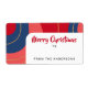 To from gift label stickers with featuring a red, pink and dark blue abstract pattern, a custom greeting (default Merry Christmas) and name.
