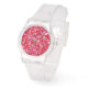 Red Pink Glitter Clear Strap Women's Watch