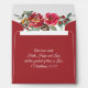 Inspirational scripture red wedding envelope depicts an elegant watercolor floral design with red and pink roses, berries, pinecone and greenery. It features a printed return address and Bible Verse 1 Corinthians 13:13, "And now abide faith, hope and love, but the greatest of these is love." All text can be deleted or customised. Good choice for winter and Christmas weddings.