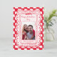 Red Pink Hand Drawn Bow Frame Photo Valentines Day Holiday Card.