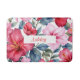Red Pink Floral Bath Mat with Watercolor Hibiscus Flowers Tropical Pattern. Use personalise this template to change text
