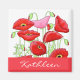 Red Pink Poppies Art Custom Name Personalised Magnet