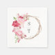 Red Pink Watercolor Roses Monogram Wreath Wedding Napkin