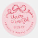 Whimsical Hand Drawn Bow Custom Bridal Shower Envelope Seals. Shown in red and pink, but all colours are editable by you. "You're invited" in a quirky and fun script. Personalise the template with your event date and title. © Kimbellished, LLC