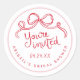 Whimsical Hand Drawn Bow Custom Bridal Shower Envelope Seals. Shown in red, white and pink, but all colours are editable by you. "You're invited" in a quirky and fun script. Personalise the template with your event date and title. © Kimbellished, LLC