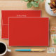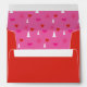 Dress up your Christmas cards with this holiday-styled red envelope. This design features a liner with a pink background. The pattern includes Christmas trees, snowflakes, hearts, and bows. The outside of the envelope is solid red.