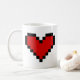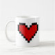 Red pixel heart coffee mug. Cute pixel art design. Pixelated computer icons. Customisable background colour. Available in small and large cups. Also travel mug version.