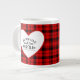 Some days, a regular size cup of joe just won’t do. When you need that extra jolt of caffeine, reach for your extra-large Red Plaid All For Love Giant Coffee Mug.