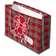 A festive red bow decorates this red plaid holiday gift tag gift bag. This classic gift bag is great for anyone. The design is from original art.