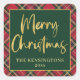 Red Plaid Gold Foil Script Merry Christmas Square Sticker