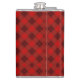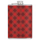 Red plaid hip flask with a metal cap, featuring a classic tartan pattern. The design conveys a cozy, rustic feel suitable for a traditional setting.