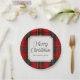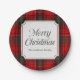 Red Plaid Merry Christmas Round Paper Plate