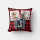 Modern and stylish customisable pillow featuring red plaid pattern with three photo collage and monogram tag. Personalise by adding photos and monogram. This personalised pillow will be perfect as a gift for birthdays, Mother's Day Father's day and Christmas.