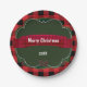 Red Plaid & Pinecones Rustic Holiday Party Plates. Customise with any text. Matching items are available.