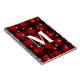 This festive custom notebook features a rustic winter design. The background features a red plaid pattern with falling snowflakes. A sample monogram initial is printed in the centre which you can personalise to include your own custom initial or other text.