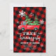 Red Plaid Tree Trimming Party Invitation with holiday truck