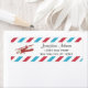 Return address labels with red vintage plane design and red and blue stripes background.