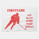 Design: Hockey player silhouettes in red ice + Words in red: "Eat Skate Score Sleep Repeat"