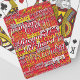 Create playing_card_game with your special name repeated in different white and yellow font-styles and printed all over a red surface.
