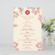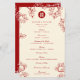 Oriental peach / plum blossoms, spring flowers in deep red, ivory and white with a simple round double happiness symbol. An elegant and romantic floral chinese themed wedding program design which is whimsical, modern and classy.