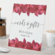 This design features red frangipani / plumeria flowers. A tropical design elegantly framed with red frangipani flowers and centred text. The bride's and groom's names are emphasised with a fancy script typography. These popular tropical Hawaiian flowers are ideal for an elegant destination beach wedding. Tropical wedding cards and gifts sign design with modern elements. Matching wedding invitations and other stationery items are also available.