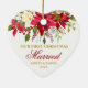 Red Poinsettia Floral Gold First Christmas Married Ceramic Tree Decoration