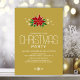 Share the joy and invite your friends and loved ones to your Christmas celebration with this simple yet modern gold with white text and a red poinsettia Christmas party invitation.