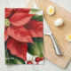 Red Poinsettia Holly Christmas Floral Personalised Tea Towel