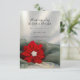 Red Poinsettia Pearls on Green Winter Wedding RSVP Card
