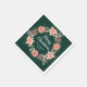 This fun and festive napkin features a wreath with red poinsettias and holly on a dark green background. The text combines handwritten script and serif fonts for an elegant and sophisticated look. This is perfect for holiday parties, brunches, dinner parties, open house and more.