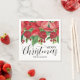 Personalised paper napkins feature modern, elegant red poinsettias with Merry Christmas and your name in chic lettering. MATCHING items in our collection.