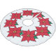 Big, red, poinsettias against a white background decorate this elegant Christmas Tree skirt. The design is from original art.