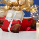 Red Poinsettias with Golden Bokeh Christmas Wrapping Paper