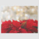 Tissue paper with a wonderful holiday photo. A bunch of red poinsettias along the bottom. Pretty golden bokeh lights in the background.