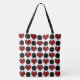 Red Polka Dot Hearts and Black Circles Pattern Tote Bag