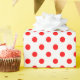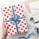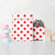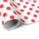 A wrapping paper built with a red polka dot pattern with a medium distance between the dots on a white background. Customize the white background among other options.