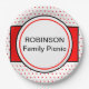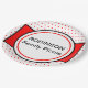 Personalised Family Picnic paper goods. Personalise with your family's last name. Fun red polka dots on white background with the look of double plates and red napkin centre of disposable paper plates. Click Customise to increase/decrease family name. Cheery summertime pattern. Original Artwork Design © TamiraZDesigns.