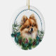 Red Pomeranian Dog Evergreen Berry Wreath Ceramic Tree Decoration