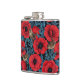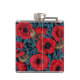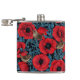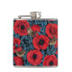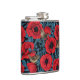 Red poppies and wrens, blue leaves on black hip flask