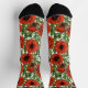 Red poppies and wrens, green leaves on white socks