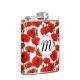 Red Poppies Floral Pattern & Monogram Hip Flask