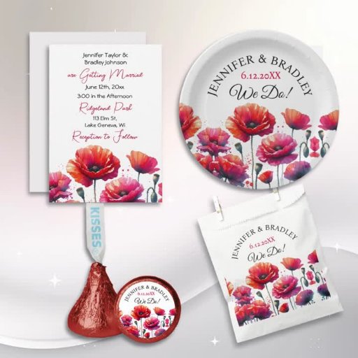 Red Poppies Floral Wedding Invitation