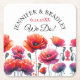 Red Poppies Floral Wedding Square Paper Coaster