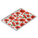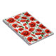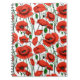 Notebook in a delicate pattern of vibrant red poppies with deep green stems and leaves, on a while background, with, each poppy bloom uniquely curved and twisted, as if swaying gently in the breeze.