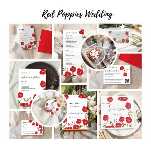 Red poppies with greenery wedding suiteDesigned by Caroline Bonne Müller